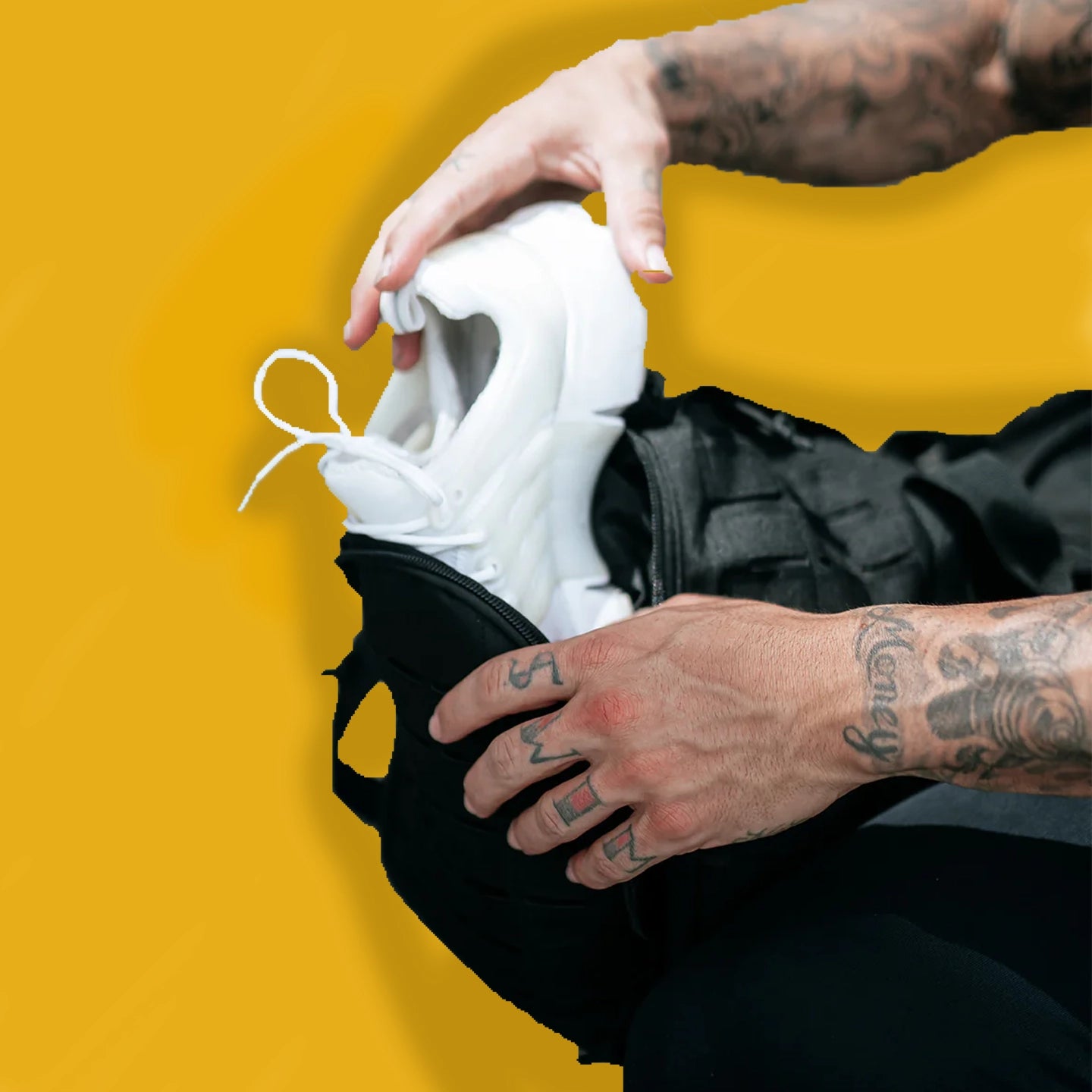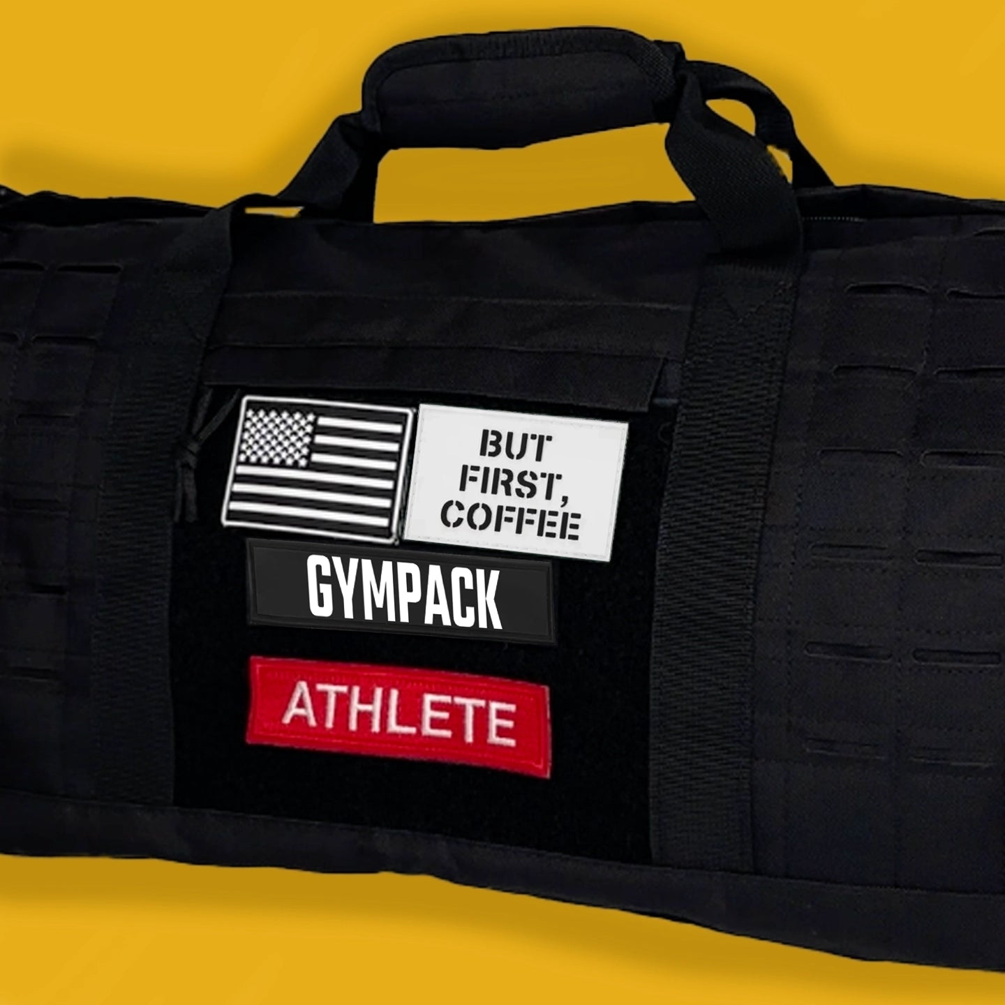 Wir präsentieren die 40-Liter-Gympack-Reisetasche in Schwarz. Diese Tasche besteht aus äußerst strapazierfähigem, wasser- und reißfestem 900D-Nylon und ist für jede Herausforderung geeignet. Es verfügt über ein spezielles Schuhfach, ein vollständiges MOLLE -Design, zwei Befestigungszonen und eine Klettverschlusstasche zur individuellen Gestaltung mit unseren charakteristischen Patches. Der ultimative Begleiter für Ihren aktiven Lebensstil!